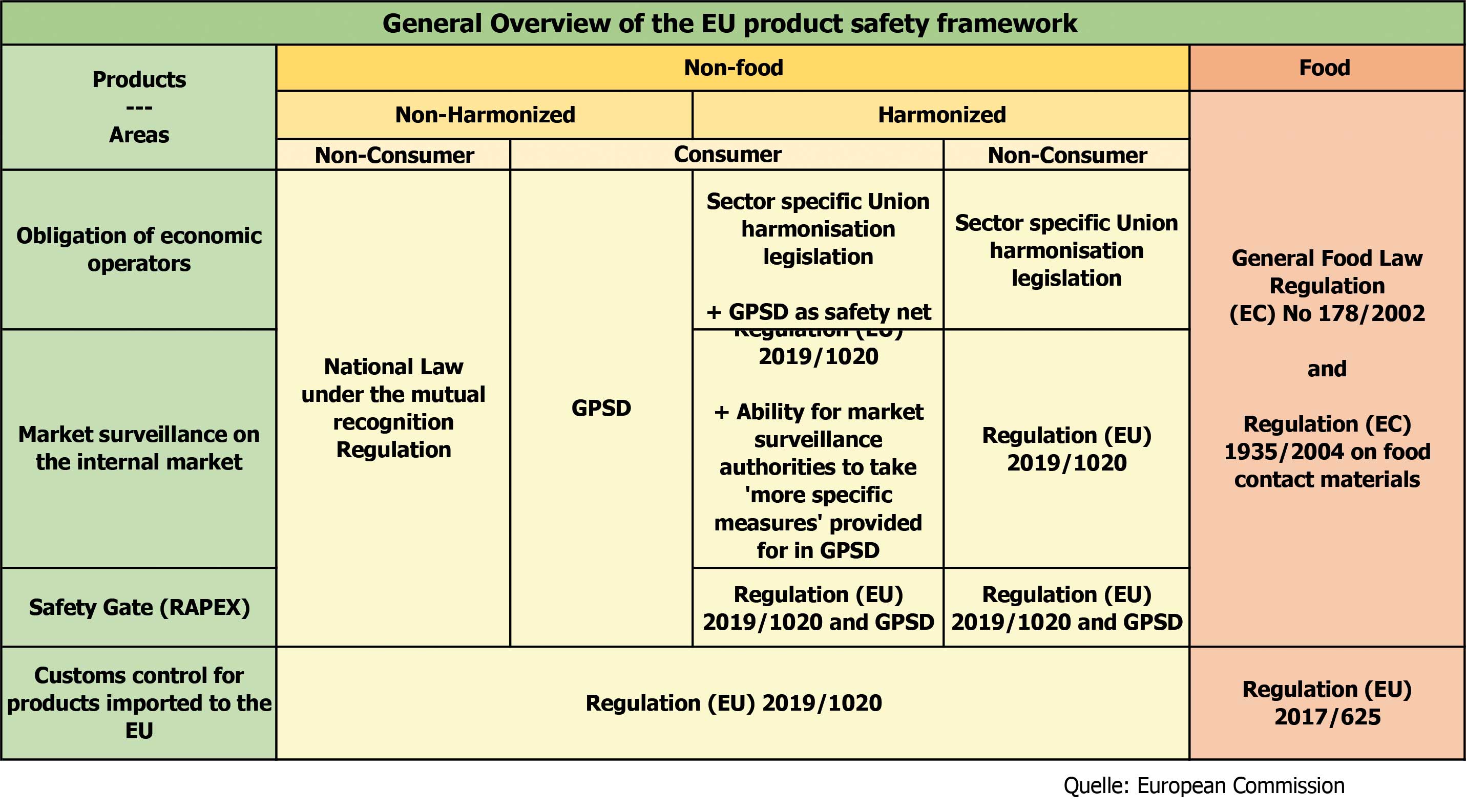 Bei der Gewährleistung der Sicherheit von Non-Food-Konsumgütern auf dem Binnenmarkt wird grundsätzlich in zwei Bereiche unterteilt: