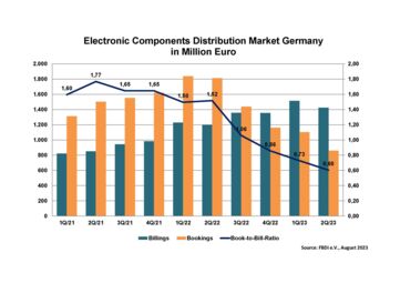 Not entirely unexpectedly, the second quarter ended with both good and bad news for the German components’ distribution. On the one hand, the turnover of FBDi's member distributors increased by 19% to €1.42 billion, compared to the second quarter of last year, but on the other hand, bookings fell by almost 53% to €859 million, compared to the record bookings of Q2/2022. The book-to-bill ratio fell from 1.52 a year ago to 0.6, the lowest level since FBDi was founded (in 2003).