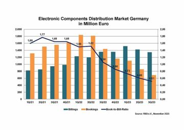 The decline in German components distribution’s bookings continues. Unsurprisingly, it starts to being reflected in revenues. Although the third quarter ended at a relatively high sales level, with 1.34 billion euros (-1%), the slowdown in bookings continues. Orders were down by more than 50% compared to the record year of 2022. The book-to-bill ratio was 0.51.