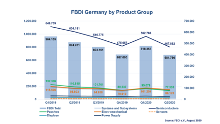 The COVID 19 lockdown in Germany, which paralyzed large parts of industrial production since April, has left deep marks on the order and sales development of the German components distribution business. Sales of the distribution companies organized in the Fachverband Bauelemente-Distribution (FBDi association) fell by 22% to EUR 682 million. The order situation developed similarly negatively: -13% to EUR 643 million. At 0.94, the book-to-bill rate fell back to the 2019 level.