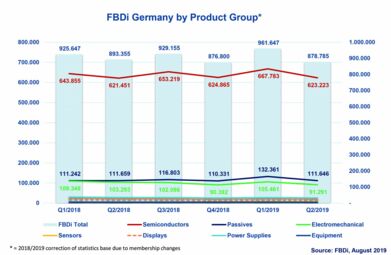 Deutsche Bauelemente-Distribution (gemäß FBDi e.V.) schrumpft im Q2/2019 um 2%.
