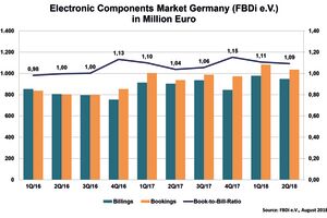 Stabil, aber uninspiriert zeigte sich der deutsche Bauelemente-Distributionsmarkt im zweiten Quartal 2018. Die im Fachverband Bauelemente-Distribution (FBDi e.V.) organisierten Distributionsunternehmen vermeldeten für den Zeitraum April bis Juni 2018 einen Umsatzanstieg von 5% (verglichen mit Q2/2017) auf 949 Millionen Euro. Die Auftragslage entwickelte sich besser, mit 1,04 Milliarden Euro wurde erneut die Milliarden-Grenze geknackt. Die Book-to-Bill Rate (Verhältnis Auftragseingang zu Umsatz) verharrte mit 1,09 auf hohem Niveau.